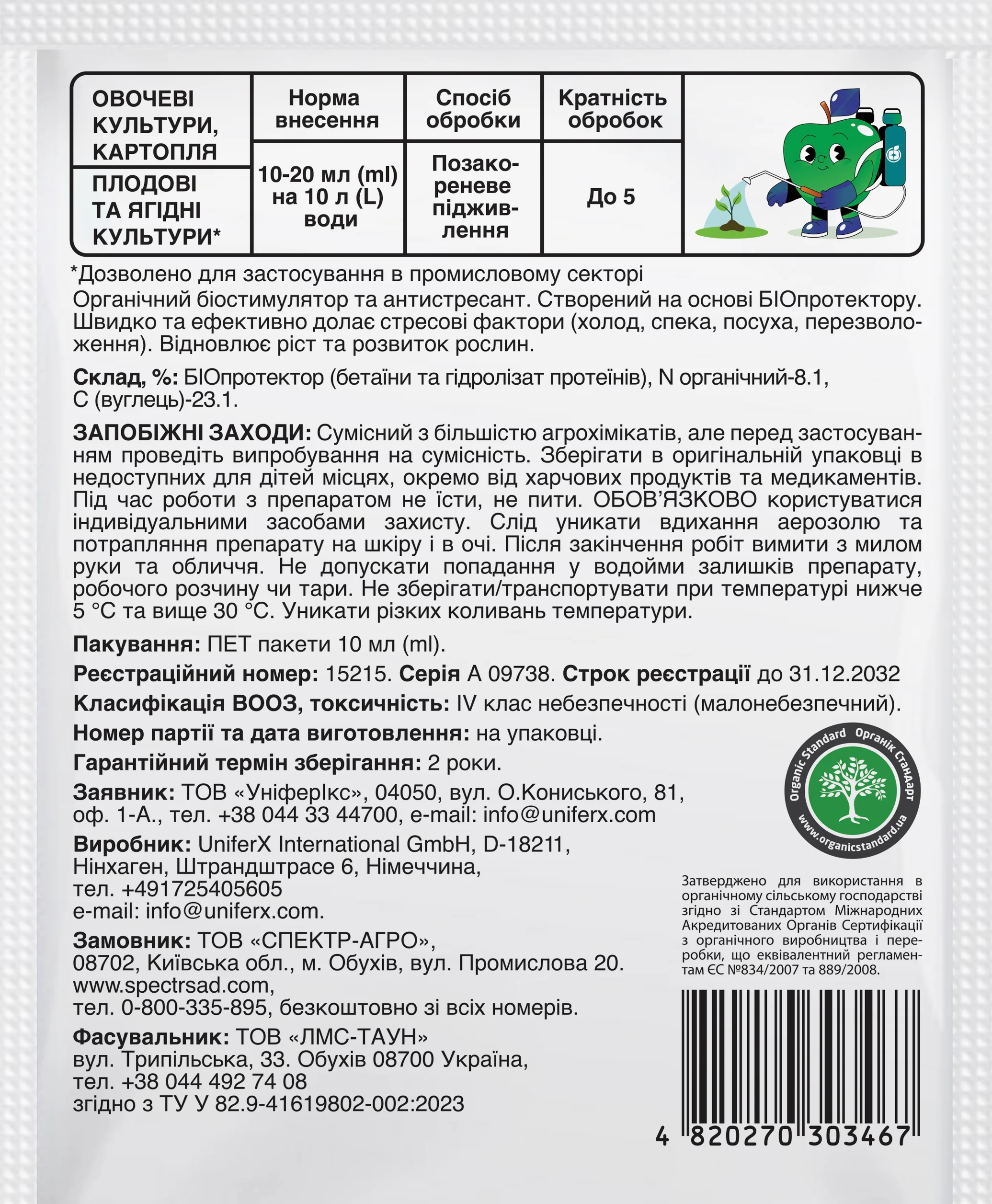| Сертифікований для органічного землеробства | так |