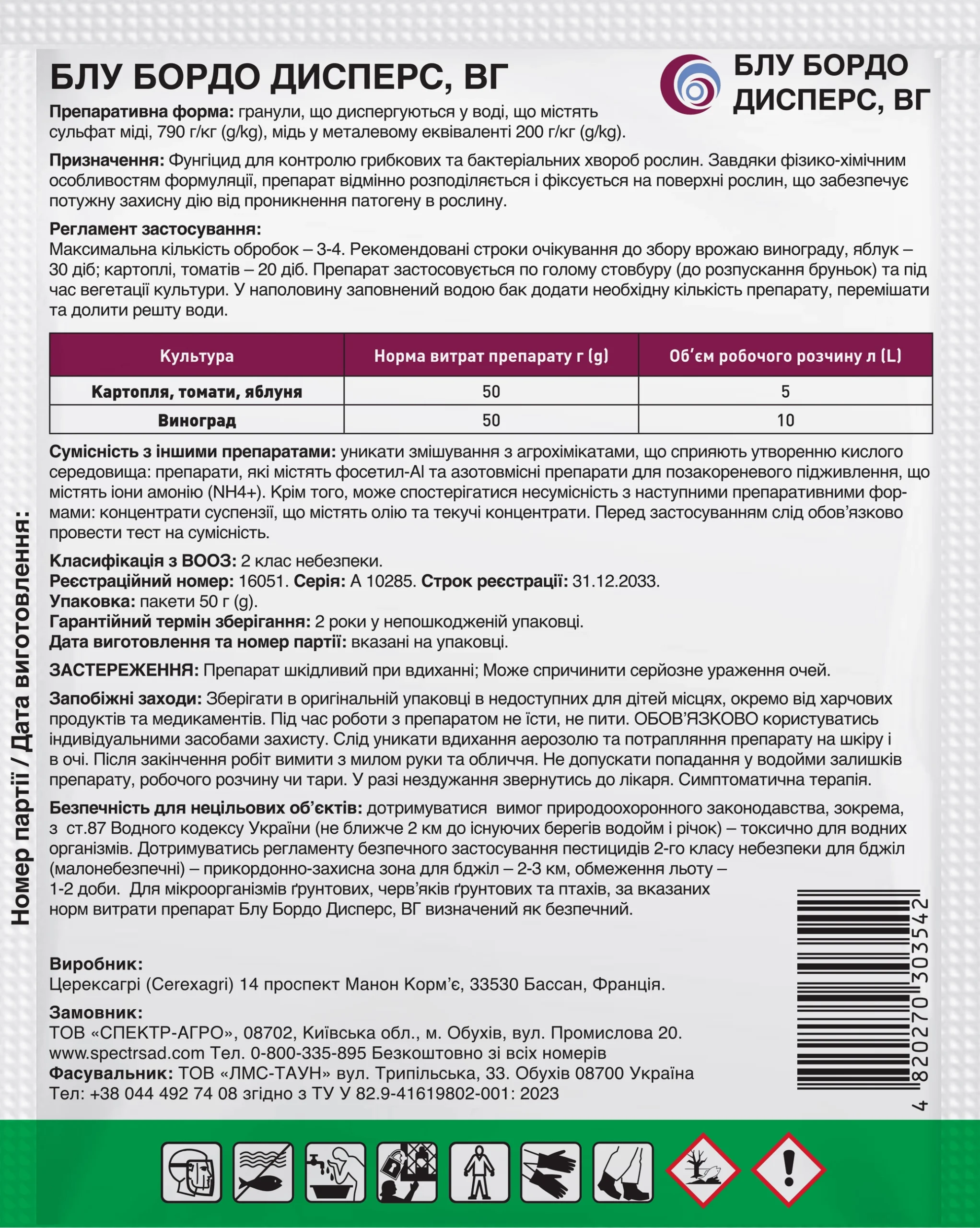 Фунгіцид Блу Бордо Дисперс, 50 г