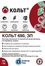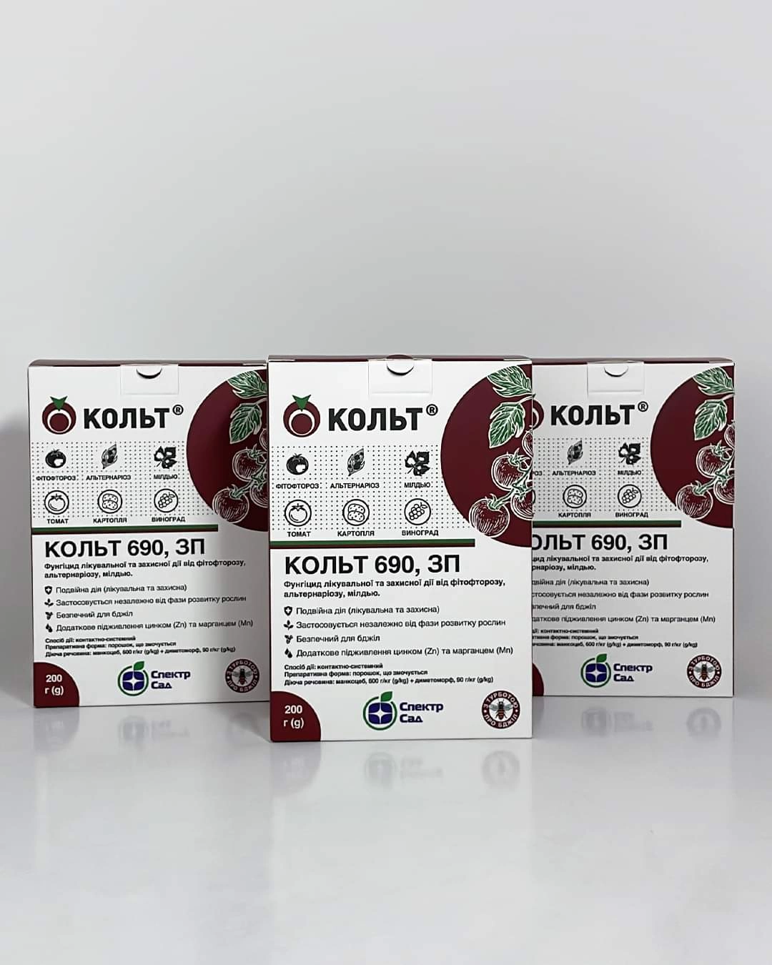 КОЛЬТ® 690, ЗП – фунгіцид лікувальної та захисної дії, що призначений для захисту картоплі від фітофторозу (Phytophthora infestans) і альтернаріозу (Alternaria solani) та винограду від мілдью (Plasmopara viticola).
