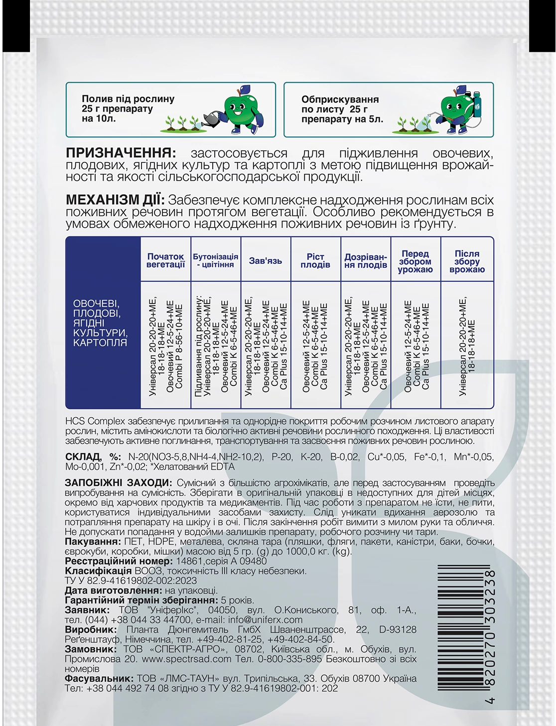 Спосіб застосування кореневе (полив або в ґрунт), позакореневе (обприскування)