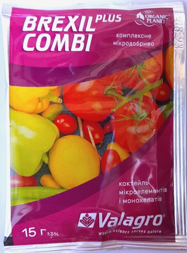 Brexil Combi, 15 г – мікродобриво, основа якого є мезо- і мікроелементи, представлені в хелатній формі. Вноситься при дефіциті заліза і цинку.