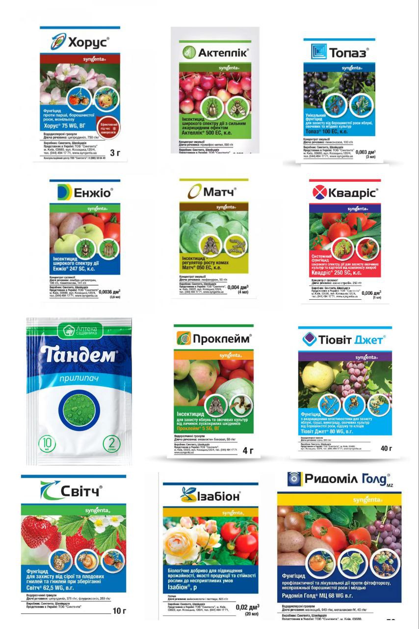 Порада: Перед застосуванням обов’язково читайте етикетку продукту — там вказано, проти яких шкідників чи захворювань препарат діє, норми і строки обробок, а також правила безпеки